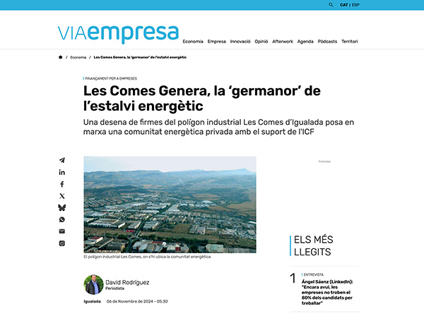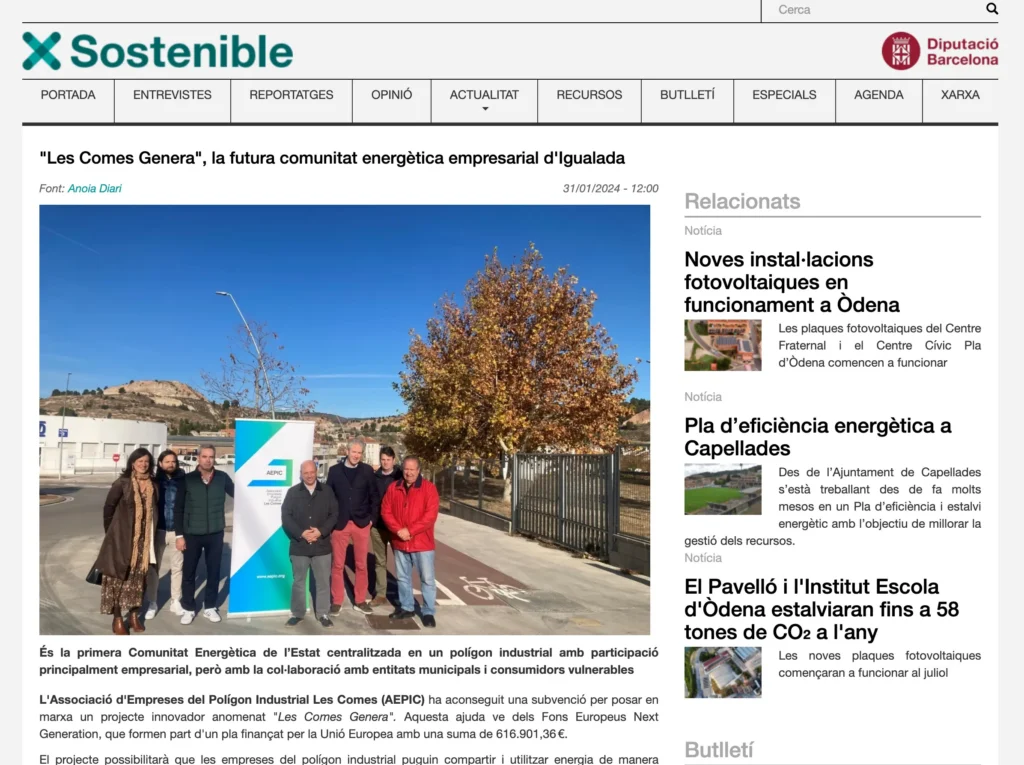 "Les Comes Genera", la futura comunitat energètica empresarial d'Igualada | Sostenible