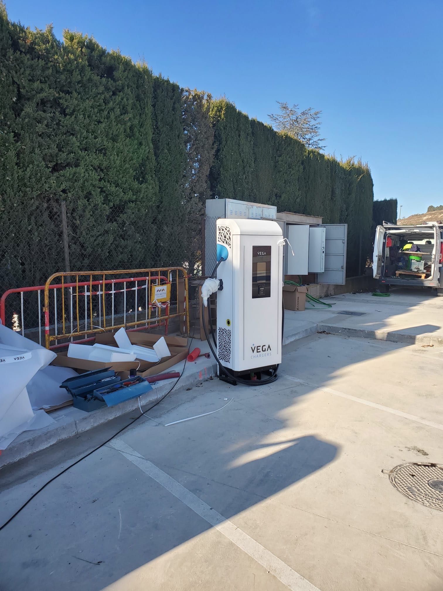 2 punts de càrrega semi ràpida de vehicle elèctric d’accès privat a l’empresa Productos Labin, amb 2 carregadors dobles de 44 kW cada un.